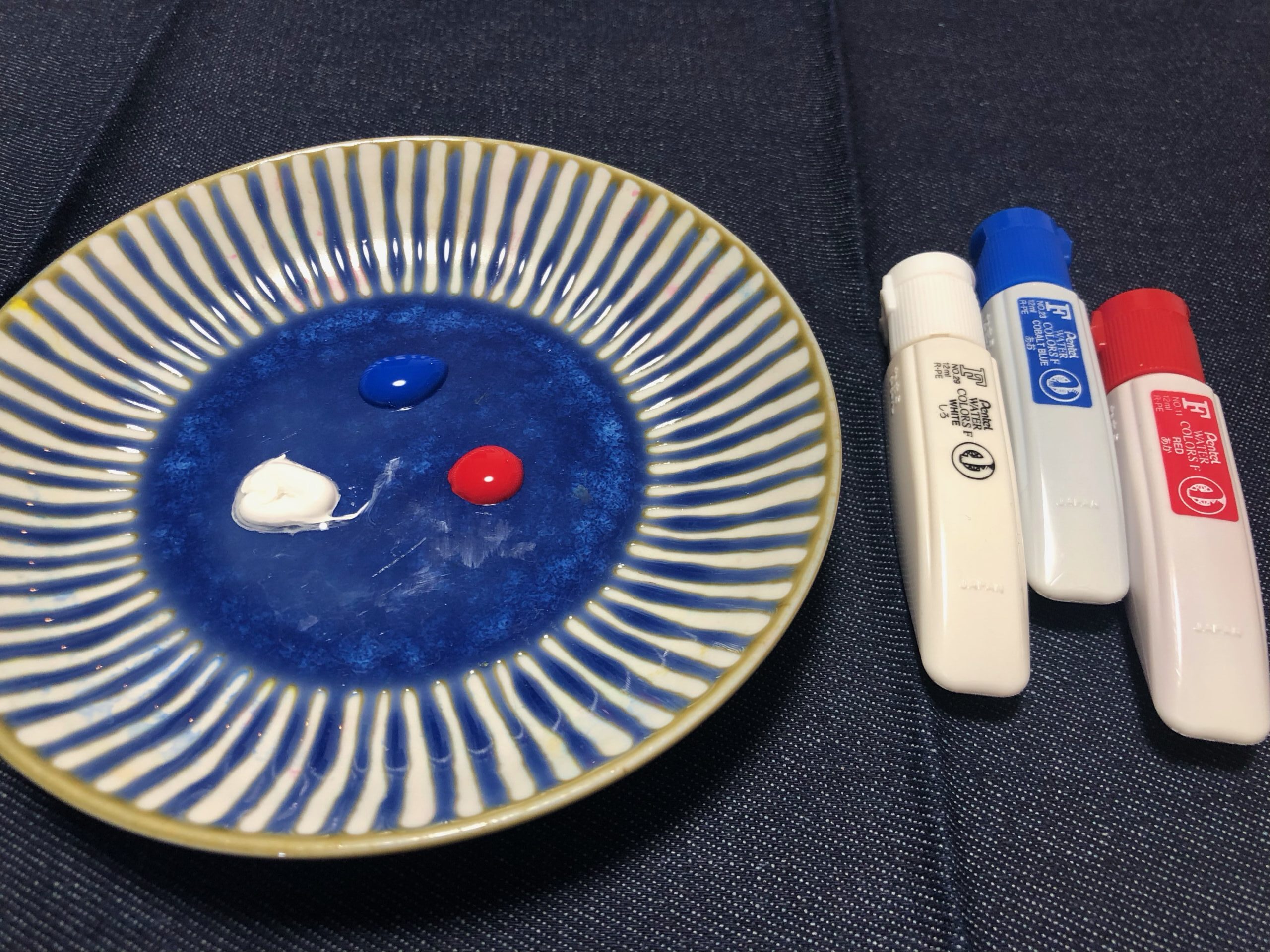 ①好きな色の絵具をお皿に出す