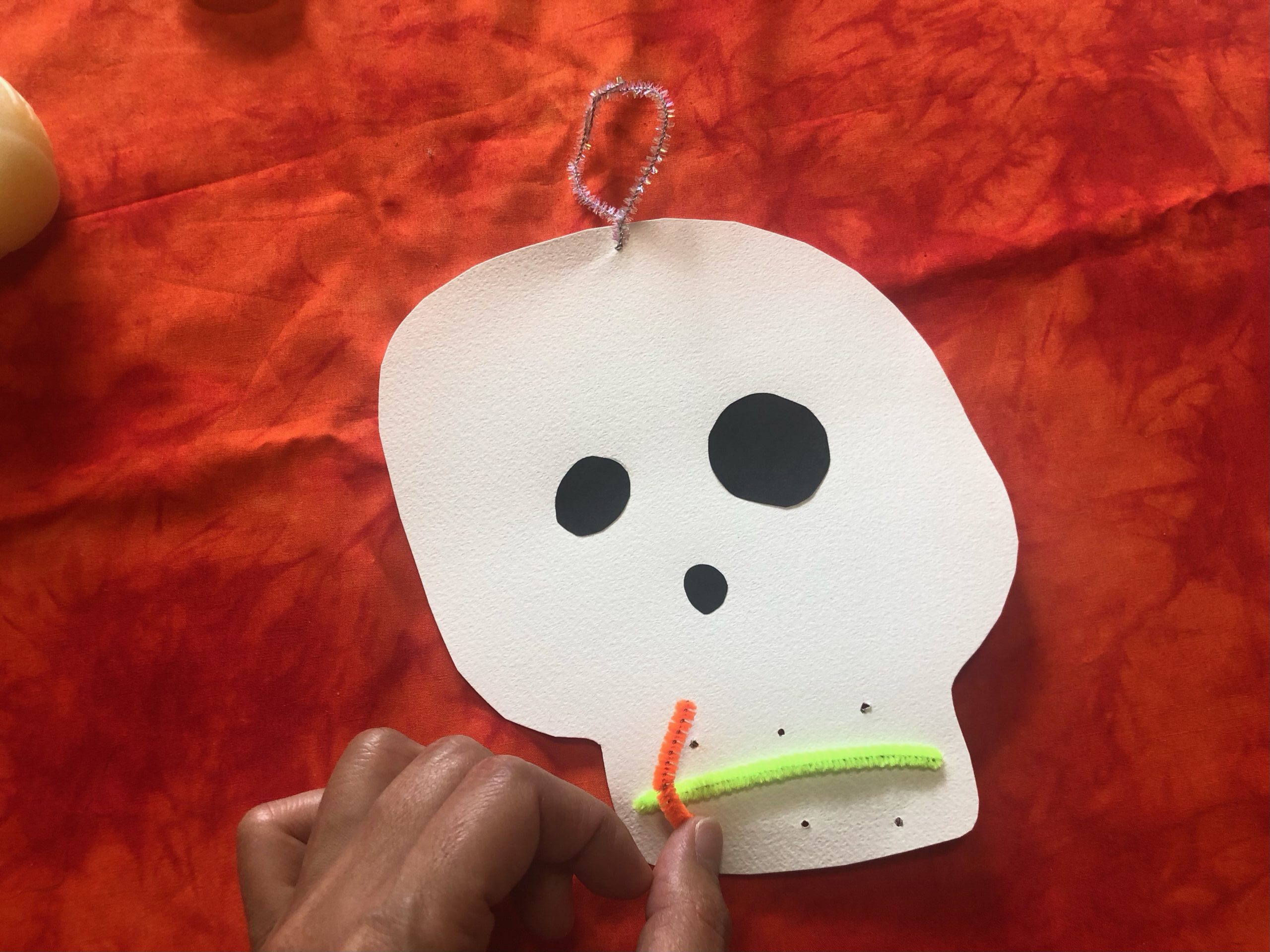 ⑤④で作った穴にモールを通して、モールの形を整えたら完成です。(モールの先に気を付けて作業してください)